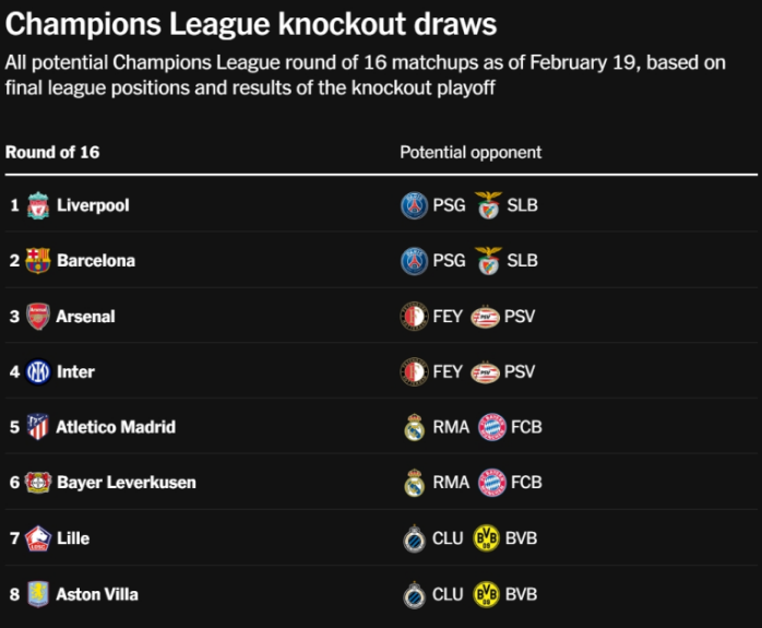 16강에서는 아틀레티고 마드리드 또는 레버쿠젠과 맞붙게 됩니다.
